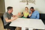 Demi Hawks, the freckled blonde with tiny natural tits, starts her personal training session in a green sports bra and shorts before things turn filthy. She grabs a massive BBC, stroking the erect black cock while the bearded stud lies back. Soon Demi Hawks is fully naked on the yoga mat, legs spread wide as the hung black man stands over her exposed pussy. She drops to her knees for sloppy oral sex, then rides him reverse cowgirl, her small tits bouncing. The action moves to the couch where Demi Hawks gets fucked hard in doggystyle, smiling back at the camera while her tight pussy is stretched. She flips into prone bone, moaning as the tattooed BBC pounds deep. The interracial cheating scene ends with Demi Hawks on her back, legs spread, taking every inch of raw black dick while her cuckolded trainer watches.